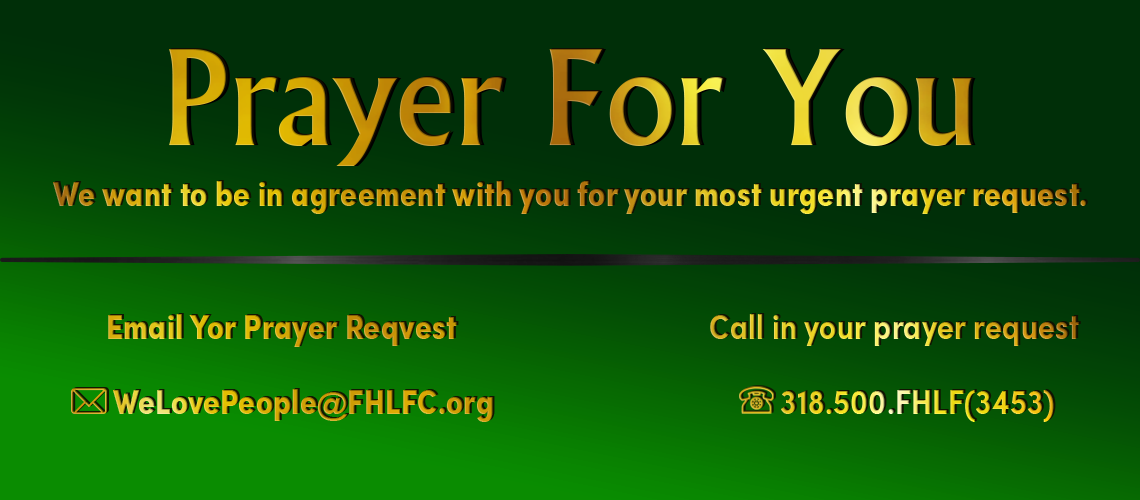 Engage with us on our Social Media outlets. Submit your Questions & Prayer Requests by calling us at 318.500.FHLF(3453) OR via emailing us at WeLovePeople@fhlfc.org.